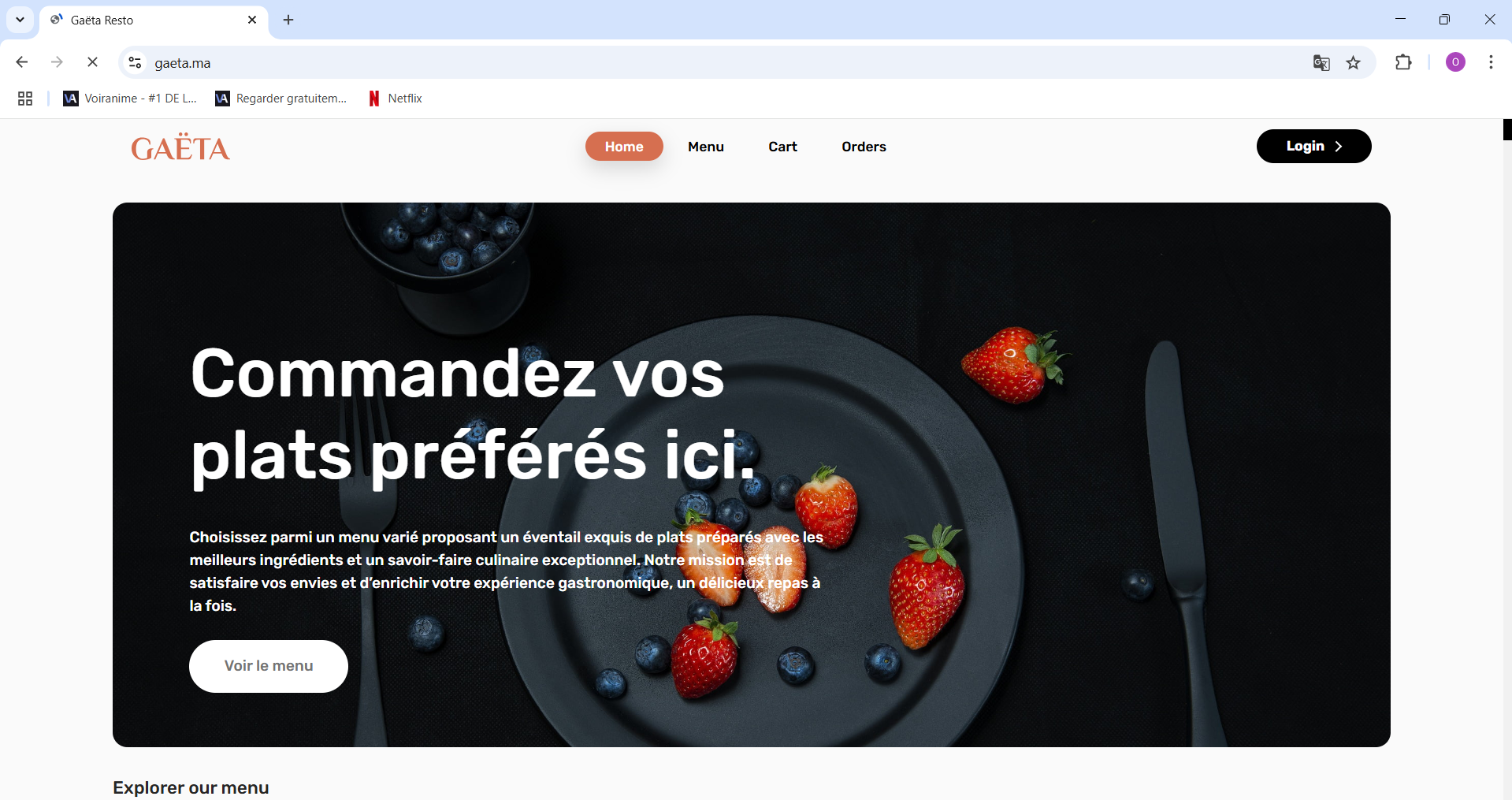 Nous avons repensé l’expérience digitale autour des besoins des utilisateurs : navigation fluide, accès rapide au menu, intégration d’un module de réservation simplifié, et mise en avant des plats via des visuels immersifs. Le menu a également été entièrement refondu, avec une présentation plus claire, structurée et appétissante, facilitant la lecture et la découverte des spécialités du chef. Chaque élément du site a été conçu pour créer un lien émotionnel avec le visiteur, renforcer la confiance et inciter à la réservation. Grâce à cette approche centrée sur l’expérience, Gaeta.ma dispose aujourd’hui d’un outil à la hauteur de sa cuisine.